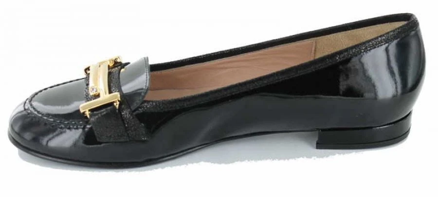 Besonders schick sind diese Ballerinas aus Lackleder der italienischen Marke Vitty by attica. Eine goldene Zierspange verleiht dem Schuh das gewisse Etwas.