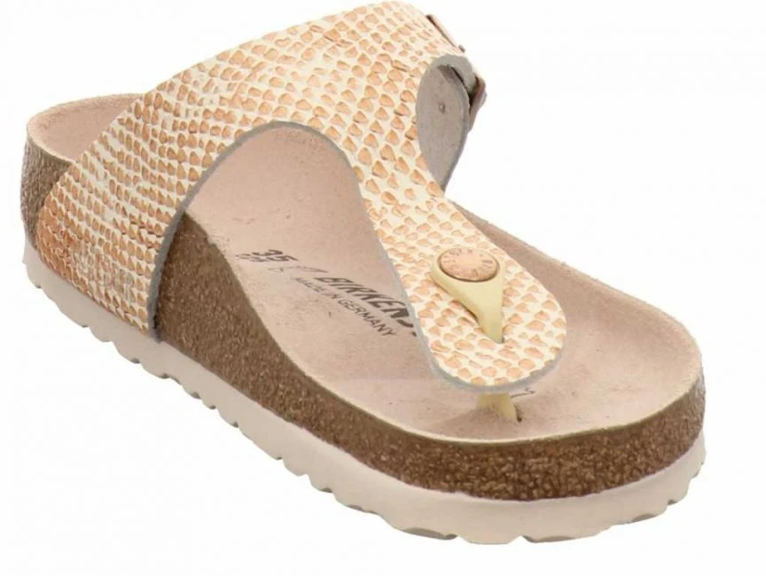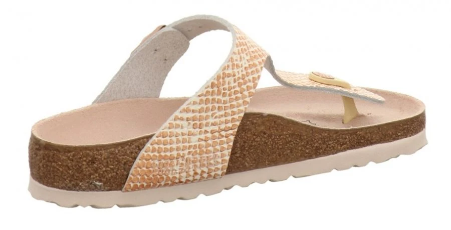 Der kontrastreiche Look macht den Gizeh zum absoluten Hingucker. Der individuell verstellbare Riemen der Sandale ist aus robustem Birko-Flor® gefertigt. Das komfortable Weichfußbett verwöhnt den Fuß den ganzen Tag.