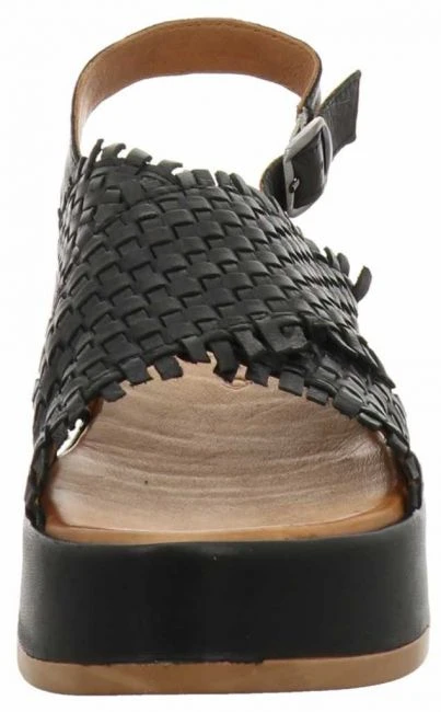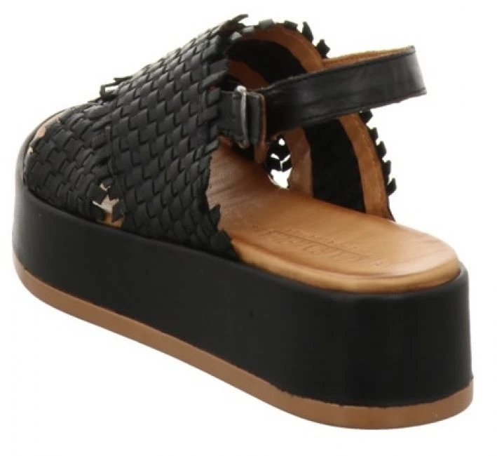 Plateau-Sandale von Carmela aus nubukleder mit verstellbarem Fersenriemchen und kleinem elastischem Einsatz.