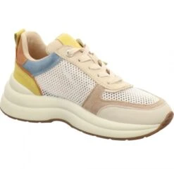 Das bequeme fußbett und die naturfarbene sohle verleihen einen alltagstauglichen Akzent.