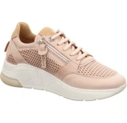 Das bequeme fußbett und die naturfarbene sohle verleihen einen alltagstauglichen Akzent.