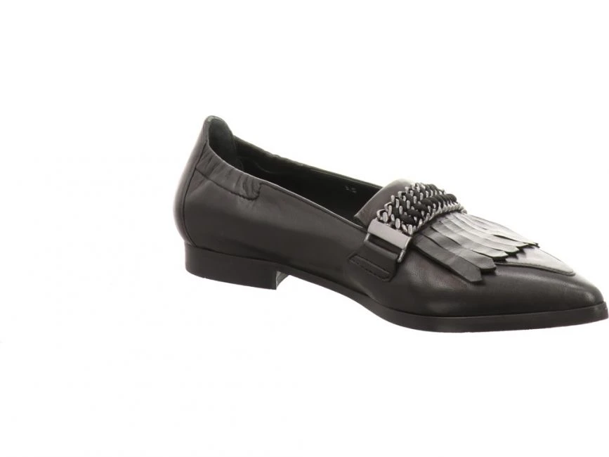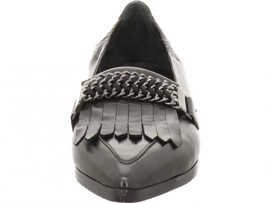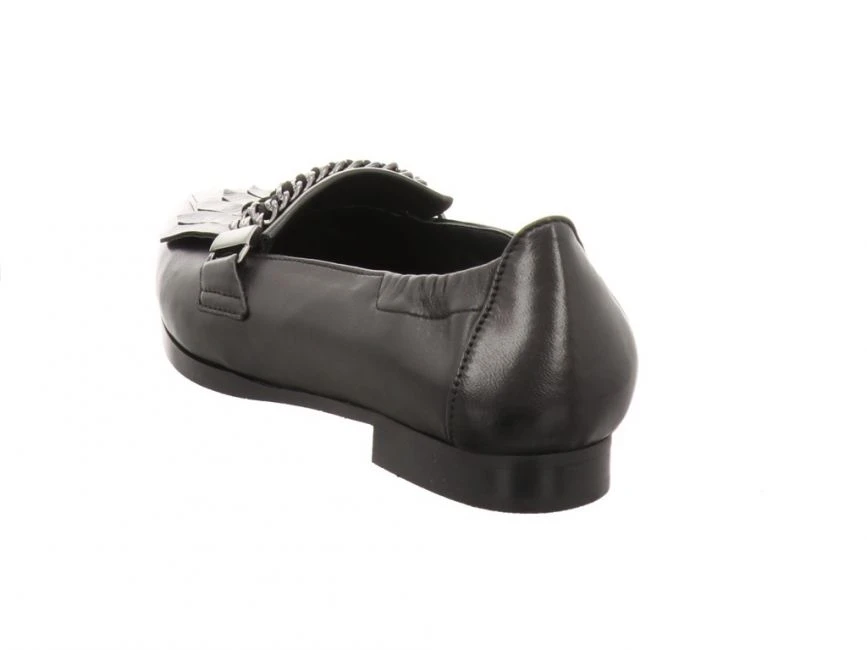 Top Mode für diesen Herbst. Leichter Slipper der Marke Donna Carolina aus weichem Kalbsleder. Die Vorderkappe wird mit einer Haferlasche und Kettenapplitationen geschmückt. Made in Italy.