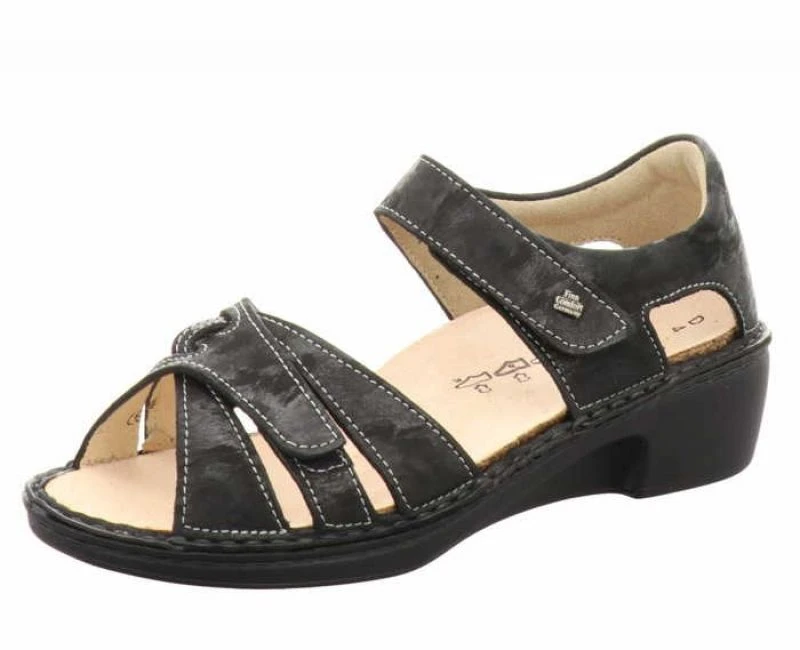 Sandale mit Klettverschluss und fester Hinterkappe, Damen-Sandale aus weichem Leder, Lederfutter, herausnehmbares Kork-Latex-Wechselfußbett, mit Lede rüberzogen, weiche PU-Laufsohle mit Absatzdämpfung. Sehr komfortabler Herrenschuh mit sehr gutem Fußbett, zusätzlich liegt ein Paar Fuß- Reflexzonen-Fußbette anbei. FinnComfort fertigt noch in Deutschland, ein Spezialist für hochwertige, bequeme und fußgerechte Schuhe. Erleben Sie diesen Komfort.