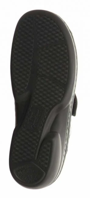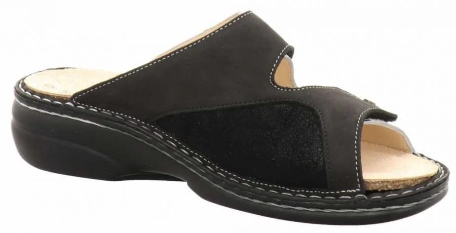 Hochwertige und sehr bequeme Pantolette mit Weichbettung und Klettverschlüssen. Weich gepolsterte Sohle mit kleinem Absatz.