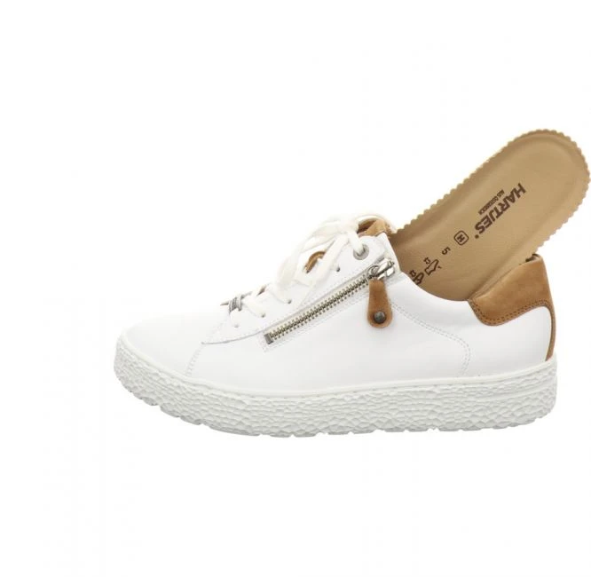 Modischer Sneaker des österreichischen Herstellers Hartjes in H Weite. Er wurde aus einem trendigen Mix aus Nappa und Veloursleder gefertigt. Das Innenfutter besteht aus Leder und atmungsaktivem Dry-Clim. Das bequeme Korkfußbett ist mit Leder überzogen und austauschbar. Sie können für Ihren persönlichen Gehkomfort Ihre eigenen orthopädischen Einlagen verwenden. Für einen einfachen Ein- und Ausstieg sorgt der seitlich angebrachte Reißverschluss zusätzlich zur Schnürung. Der Schaft ist weich gepolstert und vermeidet Druckstellen. Die sportlich geprägte leichte Laufsohle sorgt für besten Halt. Dieser vielseitige Schuh ist Ihr perfekter Begleiter für viele Gelegenheiten!