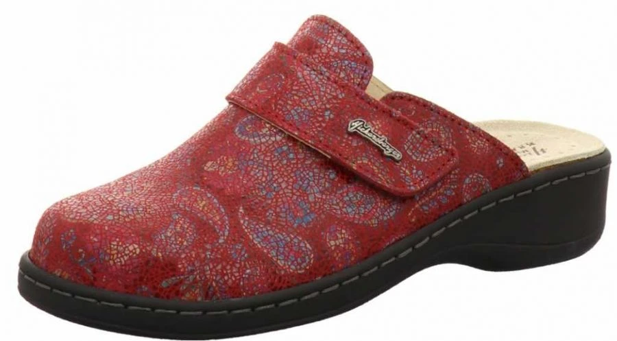 Bequemer Pantoffel mit Riemchen von Hickersberger in der Weite H. Herausnehmbares Kräuterfußbett ist mit Leder bezogen.