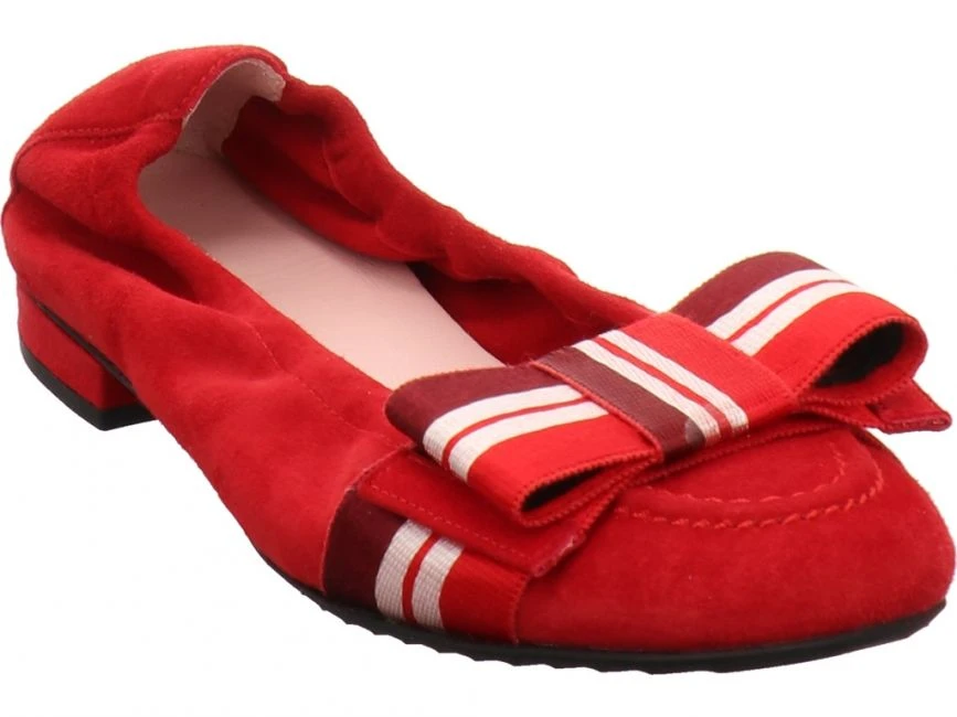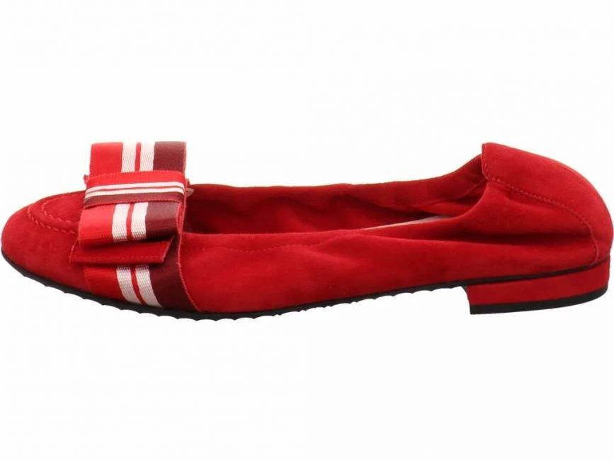 Klassischer Ballerina aus dem Hause Kennel und Schmenger. Gefertigt wurde sie aus hochwertigem Leder. Besonders edel ist die textile Schleife in Kontrastfarben. Ein schöner und bequemer Schuh für jeden Tag!