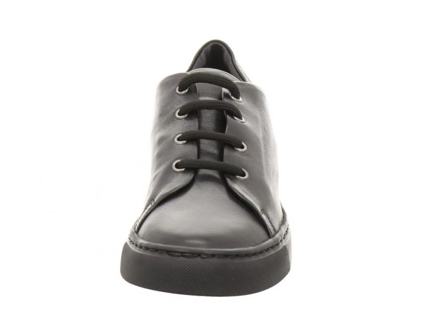 Modischer Sneaker aus besonders weichem Leder in der Farbe schwarz, Lederfutter, mit Lederüberzogenem und herausnehmbarem Fußbett -geeignet für lose Einlagen, weiche Gummisohle.