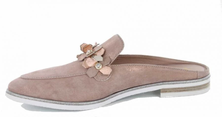 Trendige, rosane Sommerpantolette von der Marke Maripé aus Italien. Die Blumenapplikation rundet den femininen Ton ab.