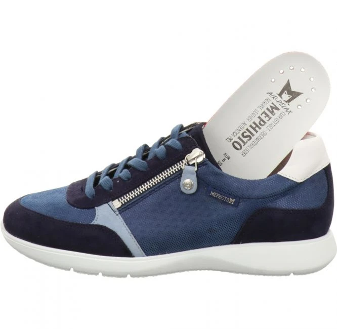 Modischer Sneaker aus dem Hause Mephisto. Obermaterial und Innenfutter bestehen aus hochwertigem Leder. Modisches Highlight sind die Einsätze aus Leder in Kontrastfarben und Einsätzen aus schimmerndem Leder mit dezenten Punkten. Für einen leichten Ein- und Ausstieg sorgen die beiden seitlichen Reißverschlüsse zusätzlich zur Schnürung. Das mit Leder überzogene Fußbett ist austauschbar. Für Ihren persönlichen Gehkomfort können Sie Ihre eigenen orthopädischen Einlagen einsetzen. Die Laufsohle besteht aus Kautschuk und bietet jederzeit besten Halt. Dieser vielseitige Schuh ist mit Soft-Air-Technologie ausgestattet. Harte Auftrittsstösse werden reduziert, Gelenke und Wirbelsäule werden geschont.
