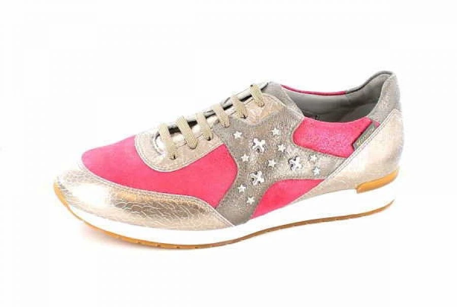 Modischer Sneaker von Mephisto. Noemie ist ein bequemer Halbschuh aus echtem Leder in der Farbe platinum (rosa/ gold). Innen sind die Schuhe komplett mit Leder gefüttert. Das mit Leder bezogene Fußbett ist herausnehmbar und somit für lose Einlagen geeignet. Die Laufsohle besteht aus 100% Coutchouc.