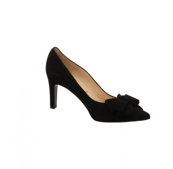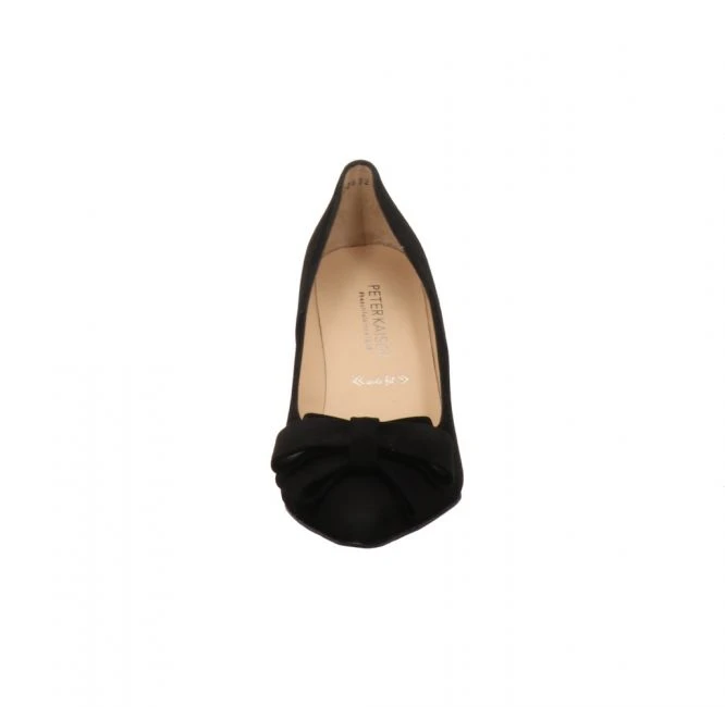 Klassischer Pumps aus dem Hause Peter Kaiser. Das Obermaterial besteht aus feinem Veloursleder. Futter und Fußbett wurden aus hochwertigem Veloursleder gefertigt. Ein besonderer Blickfang ist die elegante Schleife auf dem Vorfuß. Die Absatzhöhe beträgt 8 cm. Dank Wide-Fit schmiegt sich dieser Schuh durch seine weitere Passform auch an breitere Füße optimal an. Dieses Modell ist unglaublich vielseitig kombinierbar. Als klassischer Begleiter fürs Büro oder als Blickfang in der Freizeit. Sie sind jederzeit stilvoll gekleidet!
