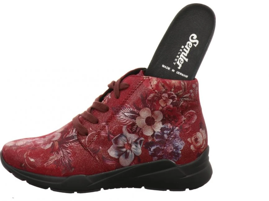 Elegante Winterstiefelette von Semler aus hochwertigem Leder in Weite H. Modisches Highlight sind die Blumen die den Schuh gänzlich zieren. Die weit öffnende Ristschnürung sorgt für einfaches An- und Ausziehen. Das Fußbett ist austauschbar. Sie können für Ihren persönlichen Gehkomfort Ihre eigenen orthopädischen Einlagen einsetzen. Für noch mehr Komfort sorgt die flexible und leichte Luftpolstersohle. Diese wunderschöne Stiefelette kleidet Sie bestens und sorgt zudem für stets warme Füße an kalten Tagen.