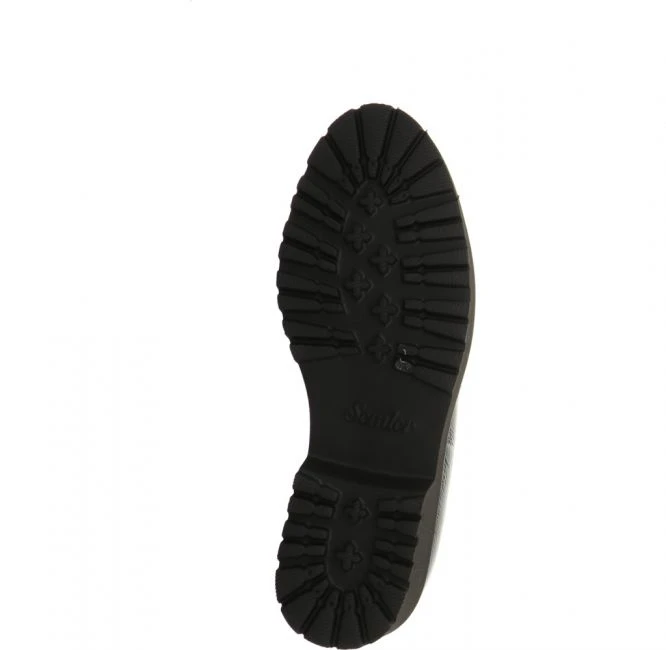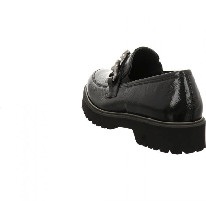 Modischer Slipper von Semler in Weite G plus. Das Obermaterial besteht aus Knautsch-Lackleder. Für das Futter wurden Stretch-Textil und Leder verarbeitet. Das mit Leder überzogene Fußbett ist austauschbar. Für Ihren persönlichen Gehkomfort können Sie Ihre eigenen orthopädischen Einlagen einsetzen. Die beiden seitlich angebrachten Elastikeinsätze sorgen für einen einfachen Ein- und Ausstieg und beste Anpassung an Ihren Fuß. Mit der leichten Softgummisohle haben Sie jederzeit besten Halt. Die Absatzhöhe beträgt 3,5 cm. Ein besonderer Hingucker ist die Kettenapplikation auf dem Vorfuß. Ein femininer und bequemer Schuh der vielseitig kombinierbar ist.