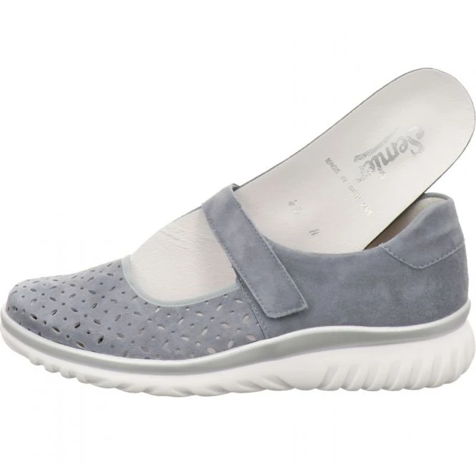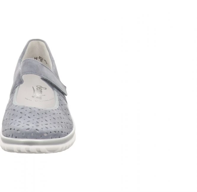 Sommerlicher Ballerina aus dem Hause Semler in H Weite. Das Obermaterial besteht aus hochwertigem Samt-Chevro. Für das Futter wurde feines Leder verarbeitet. Der stufenlos verstellbare Klettriemen bietet zusätzlichen Halt. Das mit Leder überzogene Fußbett ist austauschbar. Für Ihren persönlichen Gehkomfort können Sie Ihre eigenen Einlagen einsetzen. Die PU-Luftpolstersohle in Kontrastfarbe federt jeden Schritt gekonnt ab. Die luftige Perforierung bietet auch an warmen Tagen ein angenehmes Klima im Schuh. Ein vielseitig kombinierbar Begleiter für jeden Tag!