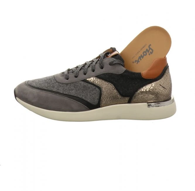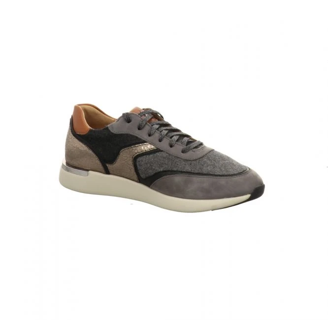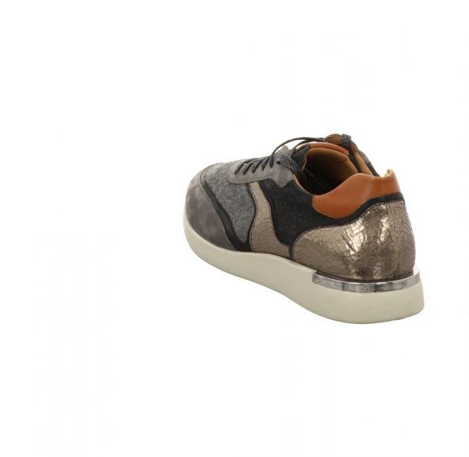 Sportlicher Sneaker mit einem ausgefallenem Materialmix. Verschiedene Leder kombiniert mit Filz lockern die Optik sehr modern auf. Die Schuhe sind auffällig leicht an Gewicht, was den Tragekomfort noch mehr erhöht. Durch die dämpfende EVA-Gummisohle werden die Gelenke geschont. Die Wedge-Sohle ist nur ein Teil von vielen, was den Schuh zum Hingucker macht. Die runde Schuhform bietet mehr Platz im Vorderfußbereich. Durch das Entfernen der Einlage, können Sie die Schnürschuhe mit Ihren individuellen Einlagen tragen. Toller Schuh für den kommenden Herbst.