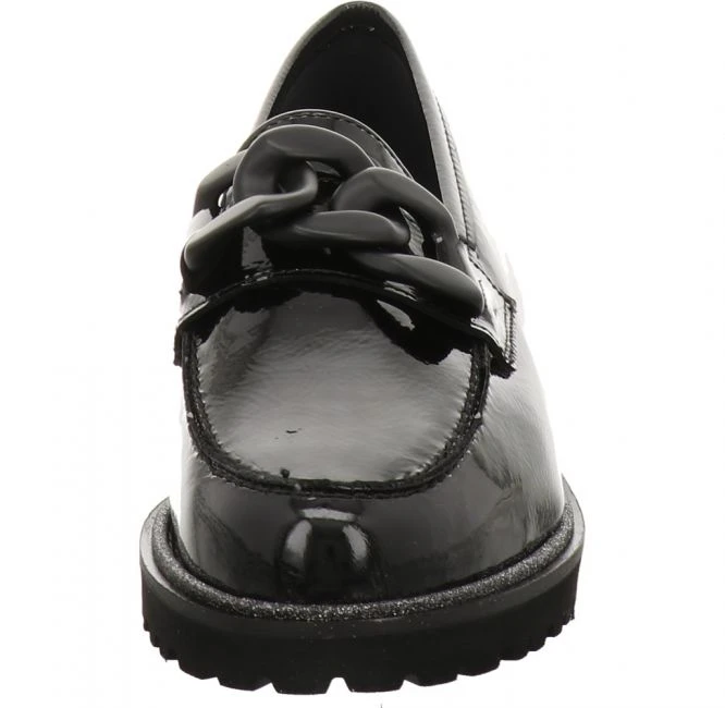 Leichter Slipper von Sioux in Weite H. Er ist perfekt für empfindliche Füße und bei Hallux Valgus. Das Obermaterial besteht aus gemilltem Kalblackleder. Für das Futter wurde ein Mix aus Textil und Leder verarbeitet. Das Supersoft Fußbett ist mit Leder überzogen und austauschbar. Für Ihren persönlichen Gehkomfort können Sie Ihre eigenen orthopädischen Einlagen einsetzen. Mit der bequemen Leichtgummi-Sohle haben Sie jederzeit besten Halt. Die beiden eingearbeiten Elastikeinsätze sorgen für einen einfachen Ein- und Ausstieg und optimale Anpassung an Ihren Fuß. Die markante Kettenapplikation, das Lackleder und die silber schimmernde Rahmung lassen auch modisch nichts zu wünschen übrig. Ein vielseitig kombinierbarer Schuh, bequem und modisch zugleich!