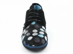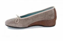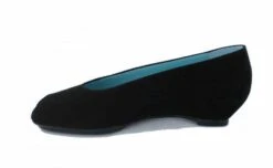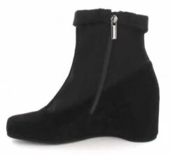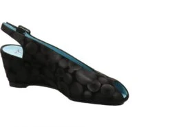 Dieser Slipper mit Keilabsatz hat am vorderen Bereich schwarzes Lackleder. Der Absatz hat geprägtes Leder und die Oberseite des Schuhes ist aus Stoffen gearbeitet. Durch das Lederfutter und die einzigartige Verarbeitung des Schuhes passt sich dieser optimal an den Fuß an.