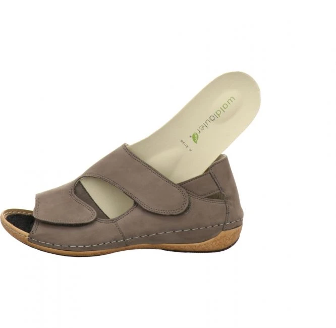 Klassische Sandale von Waldläufer in Weite H. Das Obermaterial besteht aus hochwertigem Nubukleder. Für das Innenfutter wurde weiches Leder verarbeitet. Die mit Leder bezogene Innensohle ist austauschbar. Für Ihren persönlichen Gehkomfort können Sie Ihre eigenen orthopädischen Einlagen einsetzen. Dank der beiden stufenlos verstellbaren Klettriemen und der schmalen Ferse passt sich diese elegante Sandale perfekt an Ihren Fuß an. Eine vielseitige und luftig-leichte Sandale für die warmen Tage!