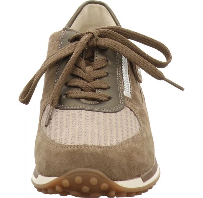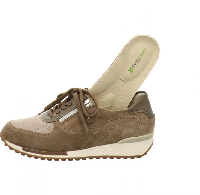 Modischer Sneaker von Waldläufer in Weite H mit schmaler Ferse. Er besteht aus hochwertigem Veloursleder. Das Lederfutter sorgt für ein optimales Fußklima. Das gepolsterte Fußbett ist mit Leder überzogen und herausnehmbar. Für Ihren persönlichen Gehkomfort können Sie Ihre eigenen orthopädischen Einlagen einsetzen. Für einen schnellen Ein- und Ausstieg sorgt der seitlich angebrachte Reißverschluss zusätzlich zur Schnürung. Mit der dämpfenden Luftpolstersohle in Kontrastfarbe haben Sie jederzeit besten Halt. Die schimmernde Prägung auf dem Vorfuß macht diesen Schuh zum modischen Hingucker. Ein vielseitig kombinierbar Schuh für jeden Tag!