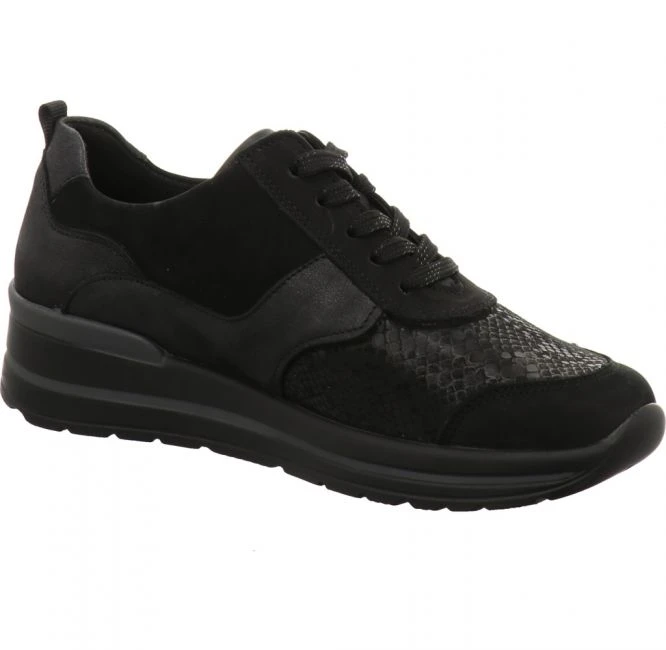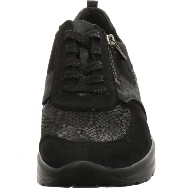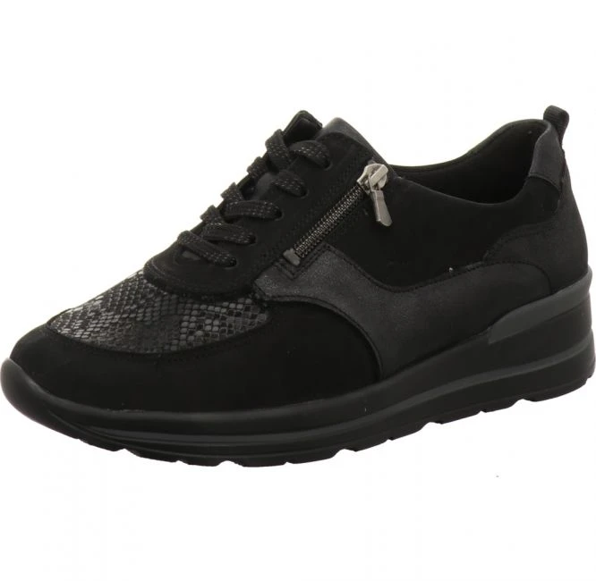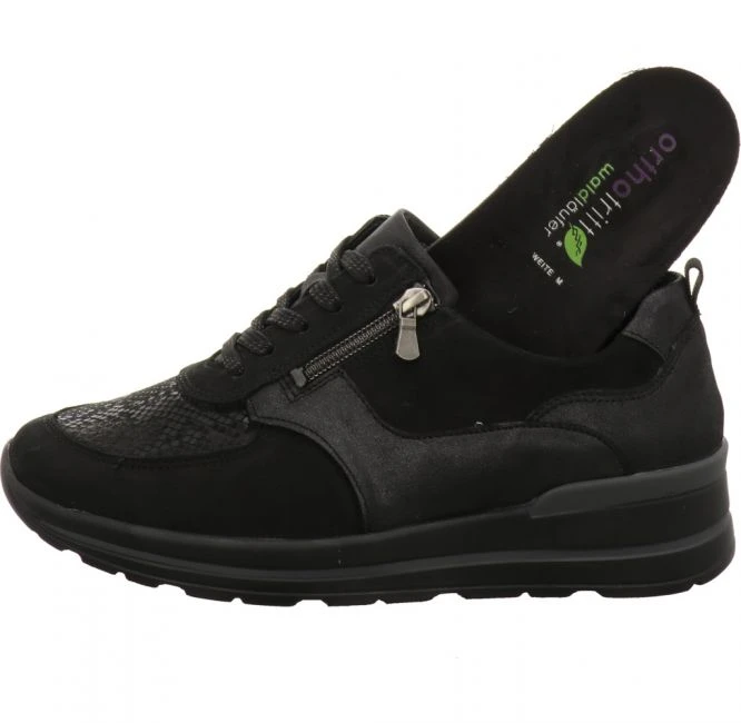 Leichter Sneaker von Waldläufer in M Weite. Das Obermaterial besteht aus Veloursleder und einem Einsatz aus dezent glänzendem Textil in Schlangenprägung. Dank Orthotritt passt sich dieser tolle Schuh der Form Ihres Fußes perfekt an. Für einen schnellen Einstieg in Ihren neuen Lieblingsschuh sorgt der seitlich angebrachte Reißverschluss zusätzlich zur Schnürung. Sie können für Ihren persönlichen Gehkomfort das Fußbett gegen Ihre eigenen orthopädischen Einlagen tauschen. Ein gemütlicher und bequemer Schuh für jeden Tag!