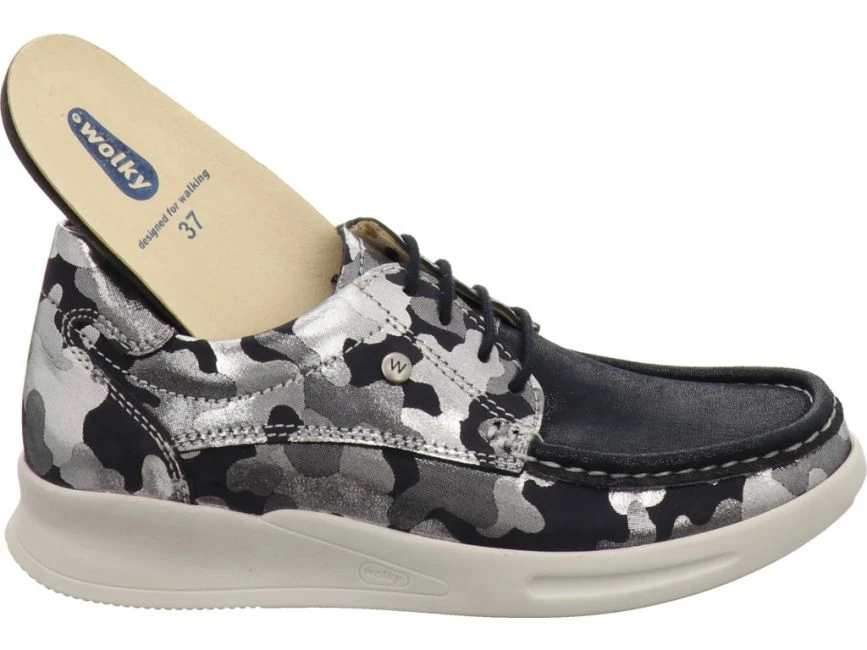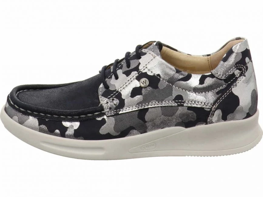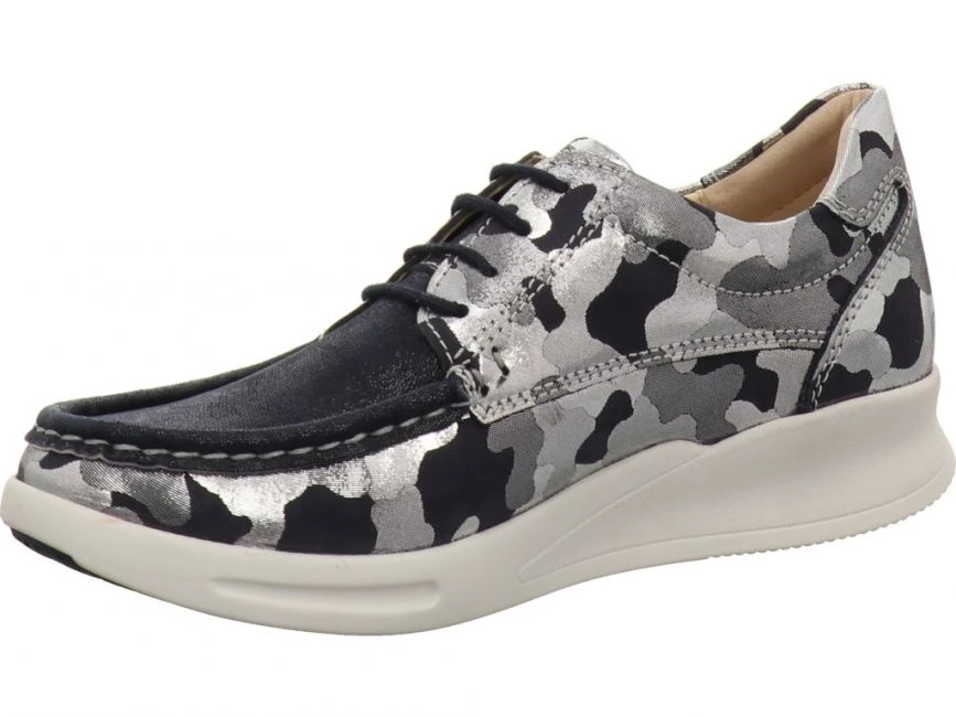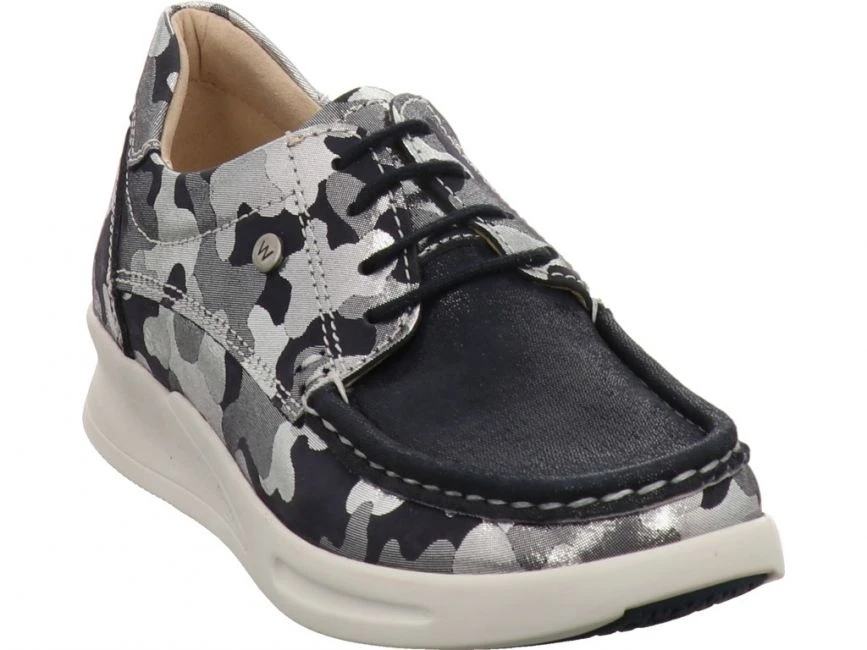 Schnürschuh aus weichem Kalbleder. Komplett mit Lederfutter gefüttert. Ein herausnehmbares Wechselfußbett für orthopädische Einlagen. Gummiprofilsohle für das raue Herbstwetter. Sehr bequeme Schuhe!