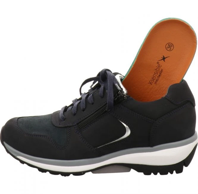 Modischer Sneaker von Xsensible aus hochwertigem, patentiertem Stretchleder. Durch eine spezielle Behandlung ist es besonders dehnbar. Dadurch fühlt sich dieser Schuh an wie eine zweite Haut und ist besonders atmungsfähig. Der silber glänzenden Einsätze und die Laufsohle in Kontrastfarbe setzen einen modischen Akzent. Das Fußbett ist herausnehmbar. Für Ihren persönlichen Gehkomfort können Sie Ihre eigenen Einlagen einsetzen. Die leichte Laufsohle federt jeden Ihrer Schritte mühelos ab. Bester Gehkomfort und eine vielseitige Kombinationsmöglichkeit machen diesen Schuh zu Ihrem perfekten Begleiter.