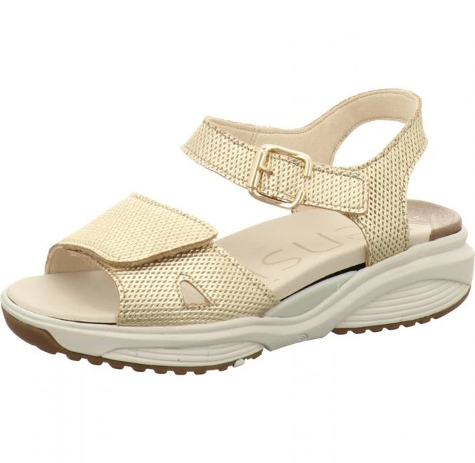 Modische Sandale aus dem Hause Xsensible. Das Obermaterial besteht aus sehr weichem Leder. Für beste Anpassung an Ihren Fuß sorgt der stufenlos verstellbare Klettriemen und der Riemen mit Dornschließe. Die markante Sohle mit Xsenible Balance-Technologie bietet jederzeit besten Halt. Das Fußbett ist austauschbar. Für Ihren persönlichen Gehkomfort können Sie Ihre eigenen Einlagen einsetzen. Die Prägung im Leder und der schimmernde Goldton lassen auch modisch nichts zu wünschen übrig. Ihr sommerlicher Begleiter mit höchstem Tragekomfort!